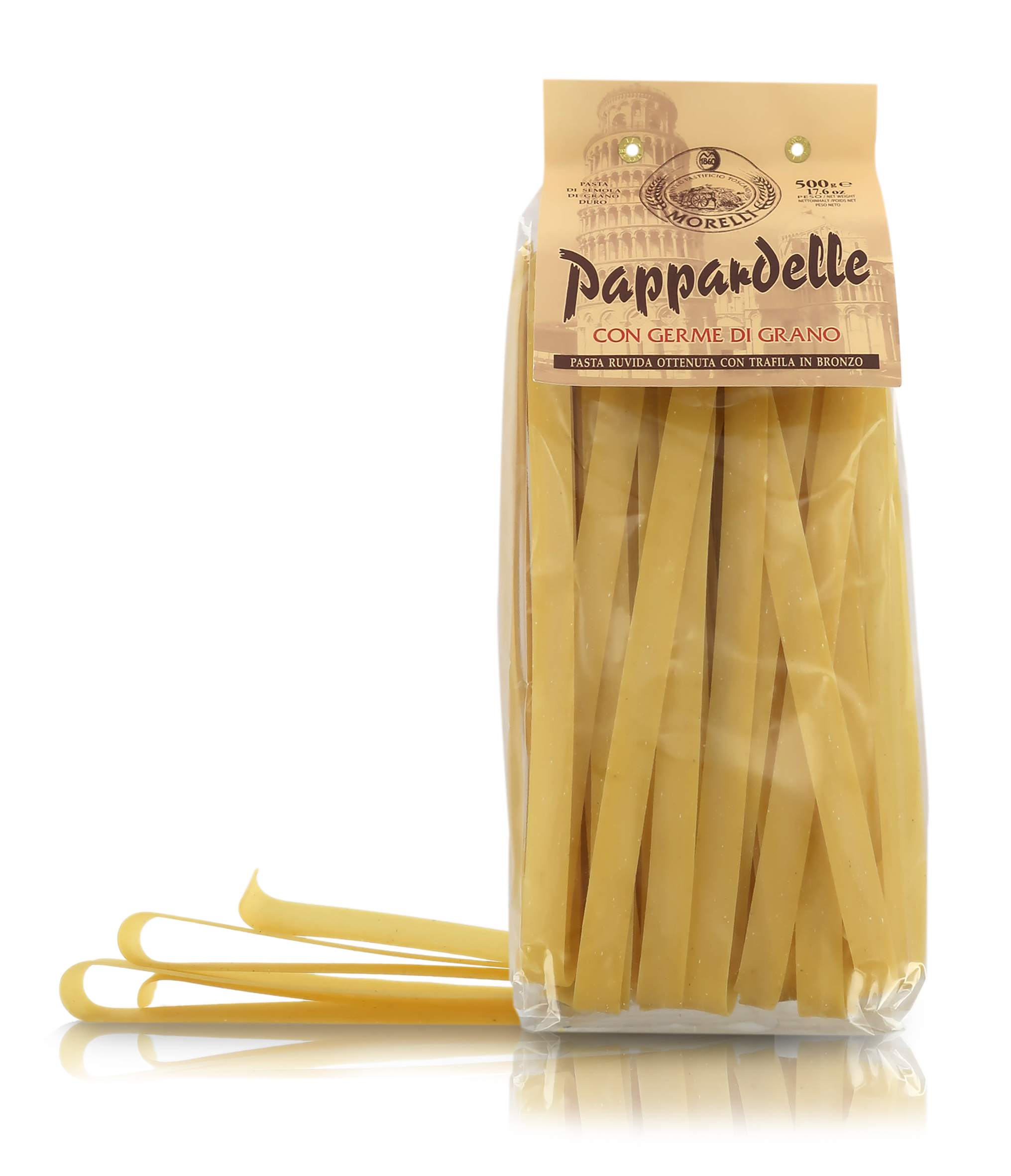 La pasta Morelli è preparata artigianalmente in un pastificio a gestione familiare in provincia di Pisa, fondato nel 1860. Ormai da ben 5 generazioni, la pasta viene preparata usando ottime semole di grano duro e tecniche classiche, che includono trafilatura al bronzo ed essiccatura a basse temperature, nel pieno rispetto della tradizione. Fiore all'occhiello della produzione Morelli è la pasta al germe di grano, che impiega un ingrediente naturale solitamente scartato, che la lavorazione artigianale, invece, consente di reintrodurre nell'impasto, donando alla pasta un gusto e un aroma molto particolari. La gamma di paste Morelli include: pasta al germe di grano, le tipicità regionali, la pasta all'uovo e germe di grano, la pasta integrale di filiera Toscana e integrale Senatore Cappelli, pasta di legumi, pasta senza glutine, grani antichi, farro e kamut, pasta aromatizzata monogusto, multicolore e articoli da regalo.