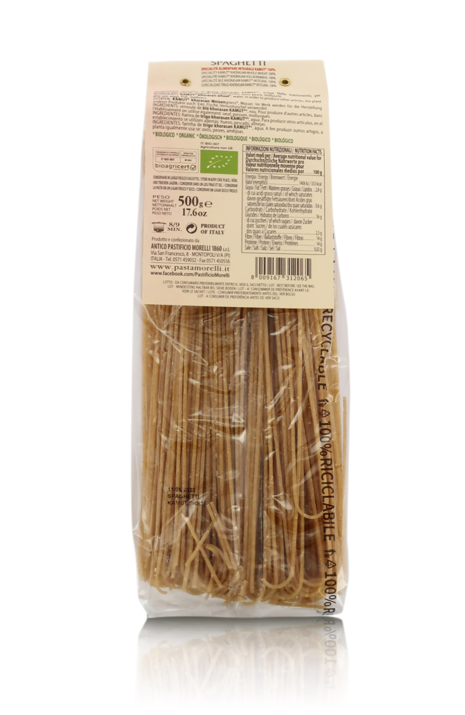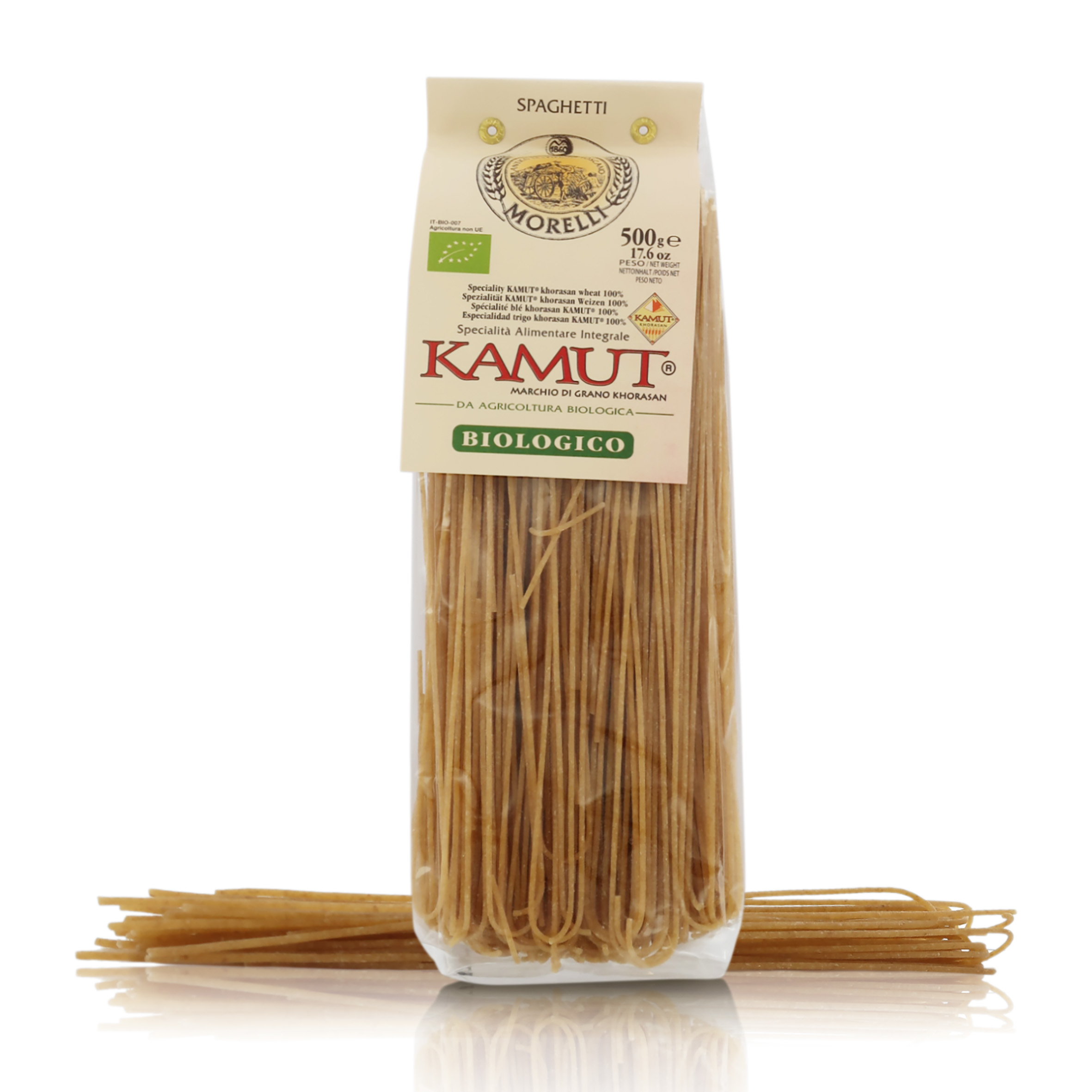 Pasta integrale al kamut bio, formato "Spaghetti" (linea "I Cereali"), 6 pacchetti da 500 grammi.