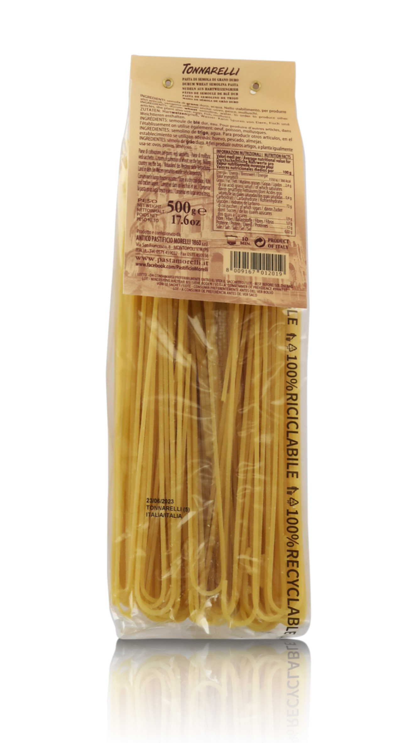 La pasta Morelli è preparata artigianalmente in un pastificio a gestione familiare in provincia di Pisa, fondato nel 1860. Ormai da ben 5 generazioni, la pasta viene preparata usando ottime semole di grano duro e tecniche classiche, che includono trafilatura al bronzo ed essiccatura a basse temperature, nel pieno rispetto della tradizione. Fiore all'occhiello della produzione Morelli è la pasta al germe di grano, che impiega un ingrediente naturale solitamente scartato, che la lavorazione artigianale, invece, consente di reintrodurre nell'impasto, donando alla pasta un gusto e un aroma molto particolari. La gamma di paste Morelli include: pasta al germe di grano, le tipicità regionali, la pasta all'uovo e germe di grano, la pasta integrale di filiera Toscana e integrale Senatore Cappelli, pasta di legumi, pasta senza glutine, grani antichi, farro e kamut, pasta aromatizzata monogusto, multicolore e articoli da regalo.
