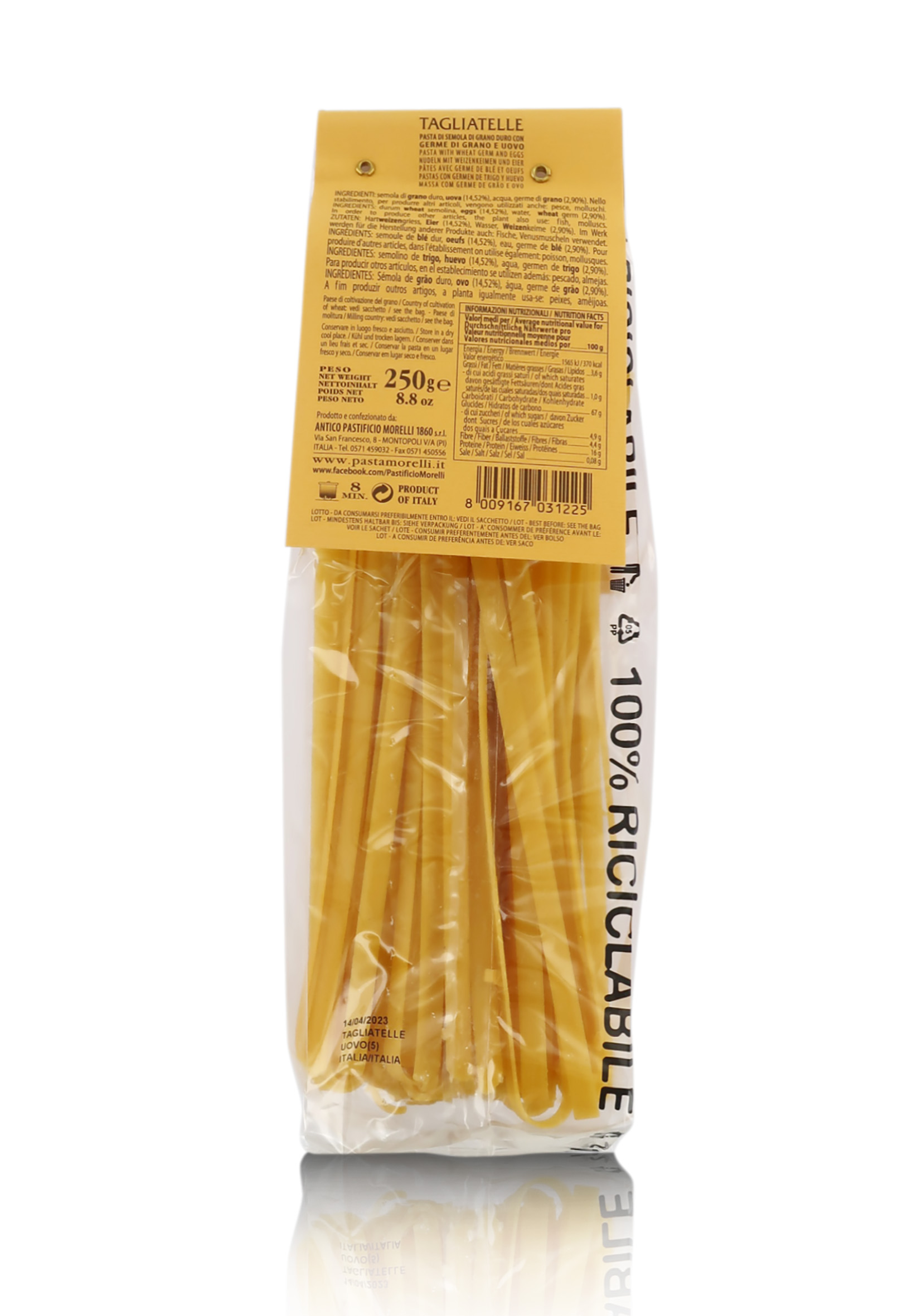 Tagliatelle, pasta all'uovo con germe di grano, 8 confezioni da 250 grammi.