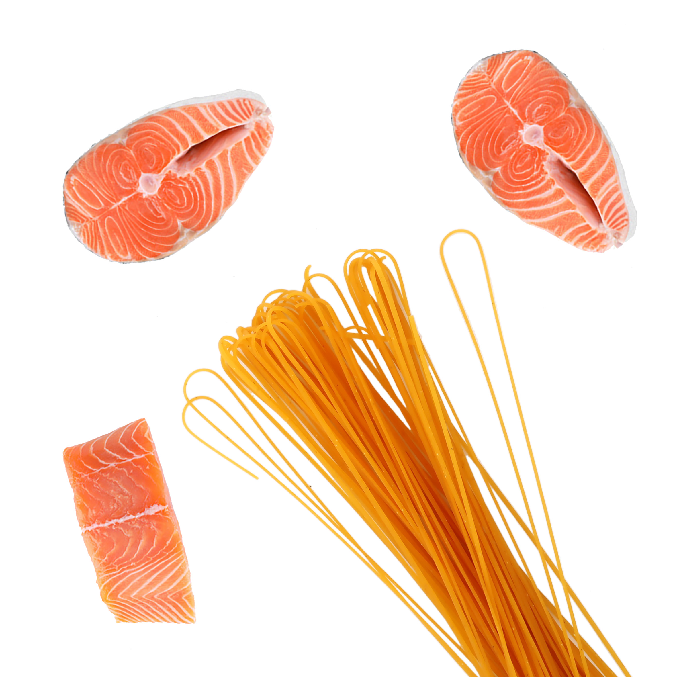 Ingredienti: Semola di grano duro, Acqua, Uova, Germe di grano, Aromi (estratto di paprica dolce, sale), Salmone disidratato.