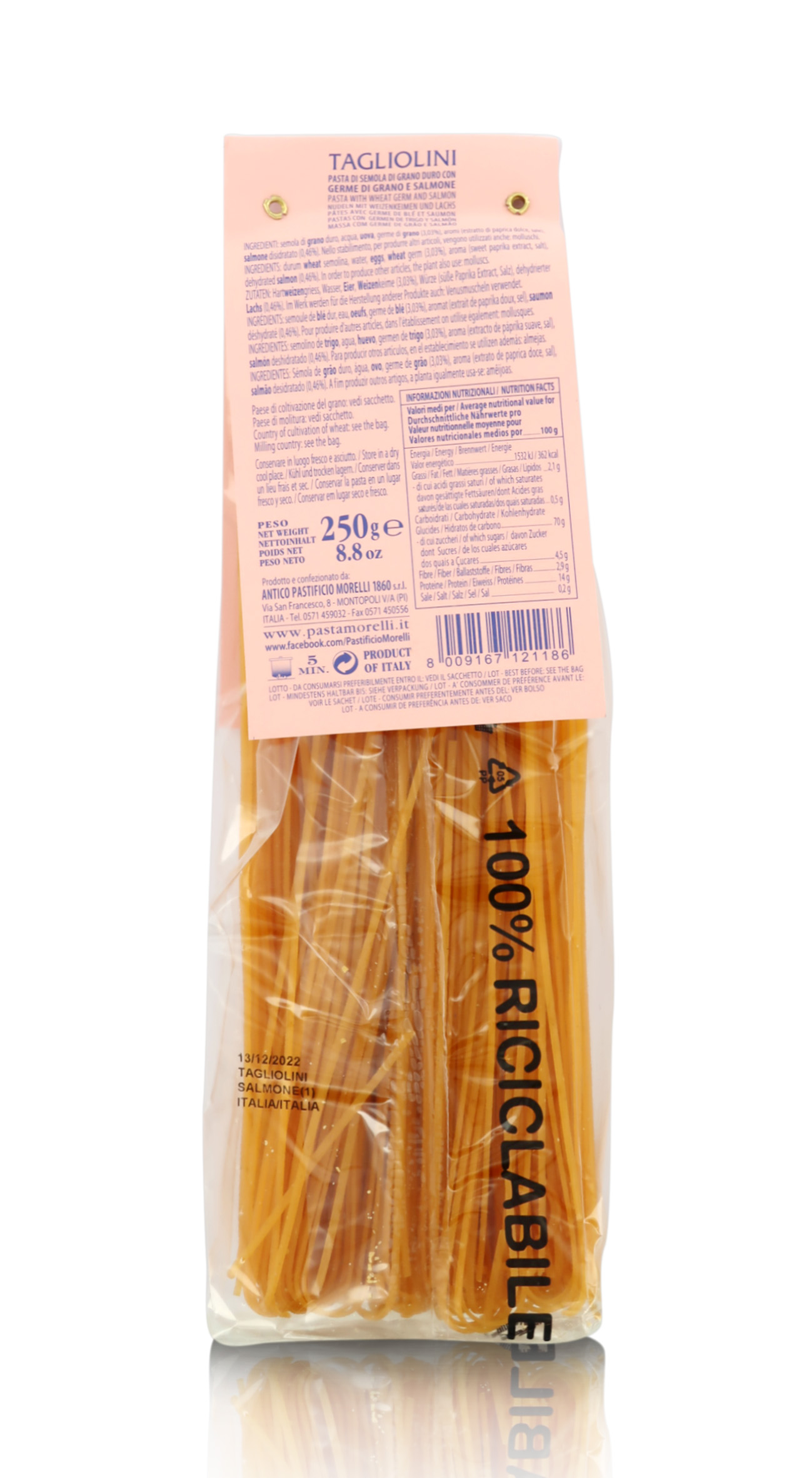 Tagliolini al salmone, pasta aromatizzata, 8 confezioni da 250 grammi