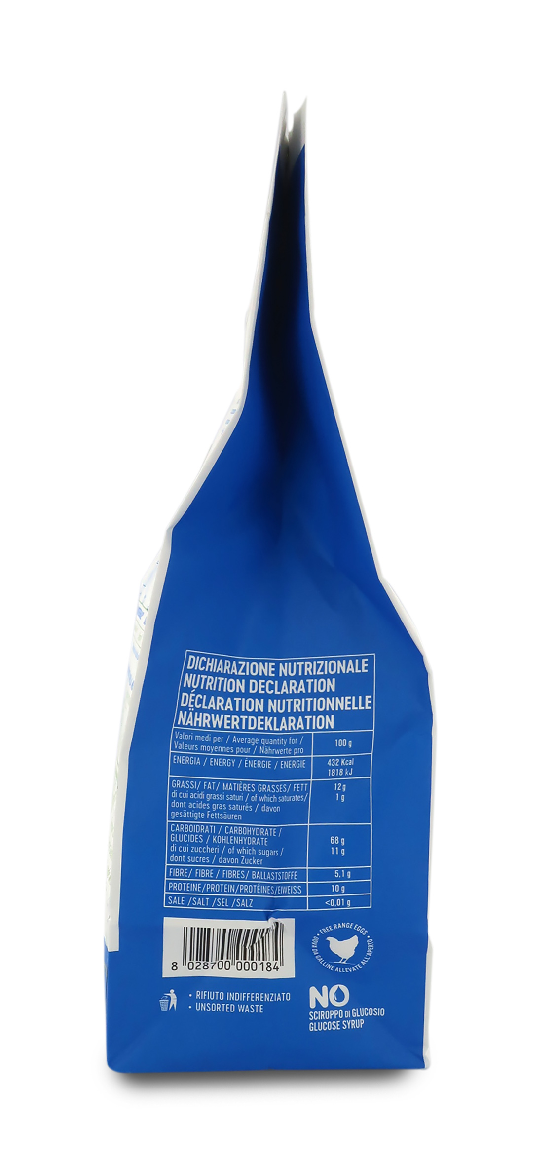 Ingredienti: Farina di grano integrale, farina di grano tenero, burro, uova (di galline allevate all’aperto), zucchero, lievito fresco per panificazione, sale marino.