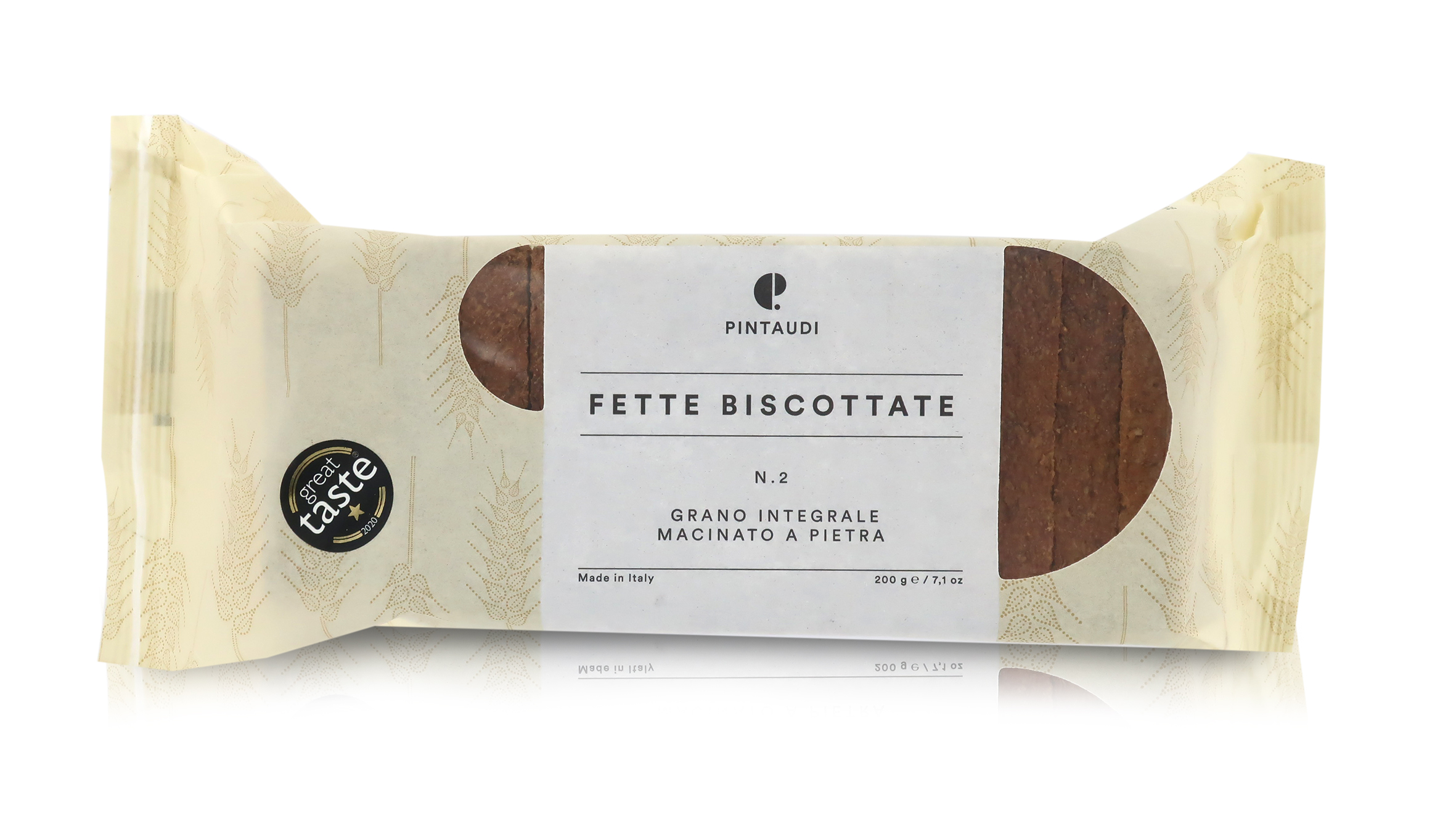 Pintaudi Fette Biscottate N. 2 - Grano Integrale Macinato a Pietra per Colazione o Merenda, 200 Grammi