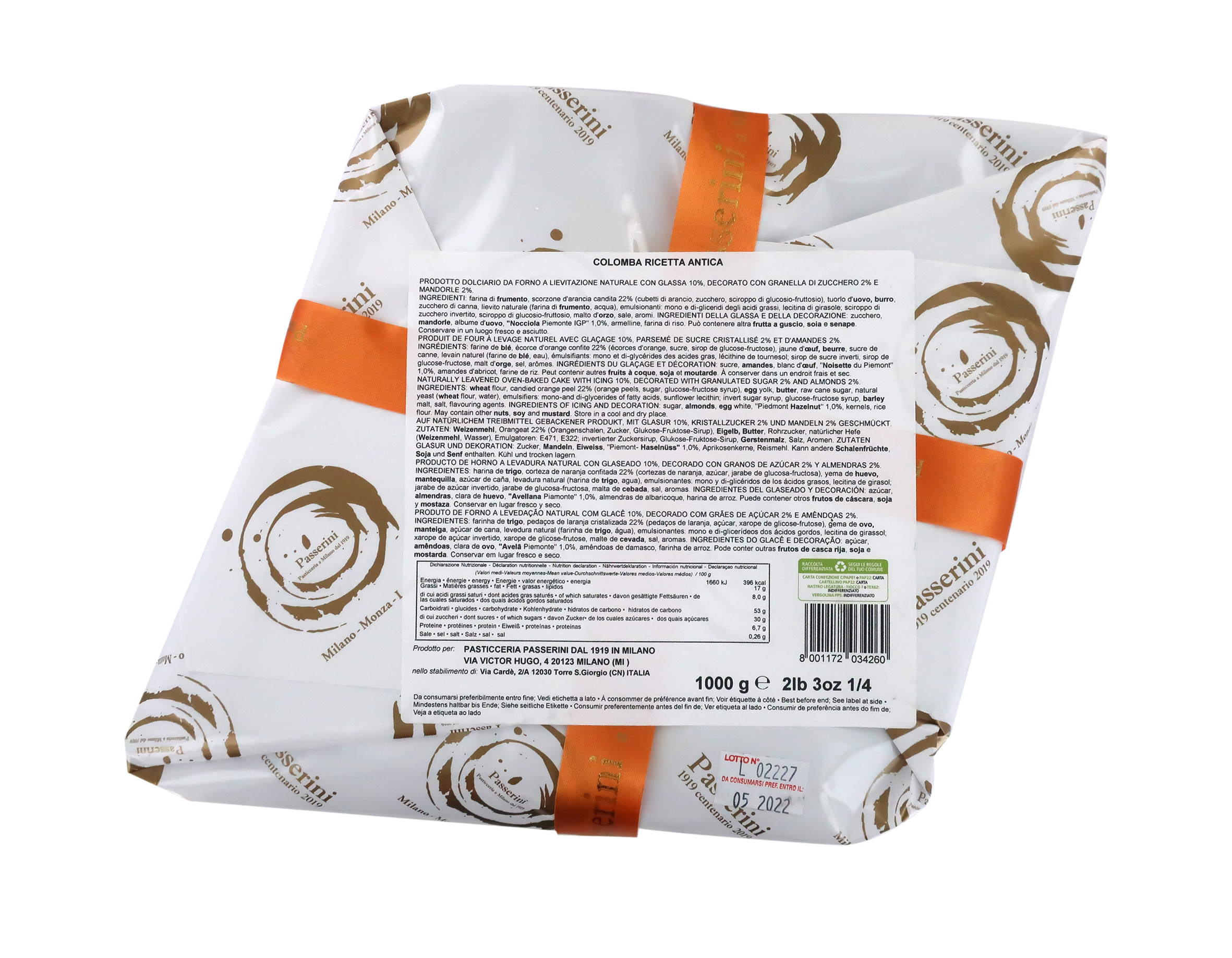 Passerini Pasticceria a Milano dal 1919 Colomba Artigianale, Ricetta Tradizionale, Tipica Torta Pasquale, Colomba Classica Sfornata in Italia, 1 Kg