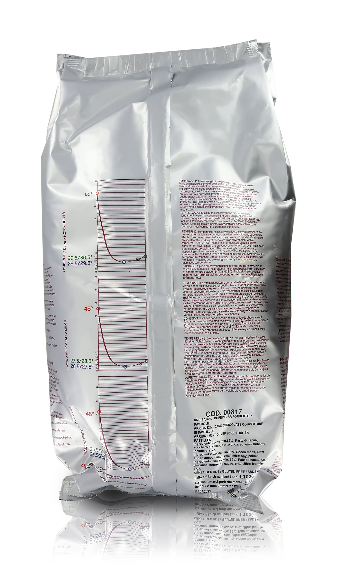 Consiglio d'utilizzo: perfetto per ogni tipo di creazione, pralineria, corpi cavi, ripieni, ricopertura, decorazioni, mousse e gelati.
