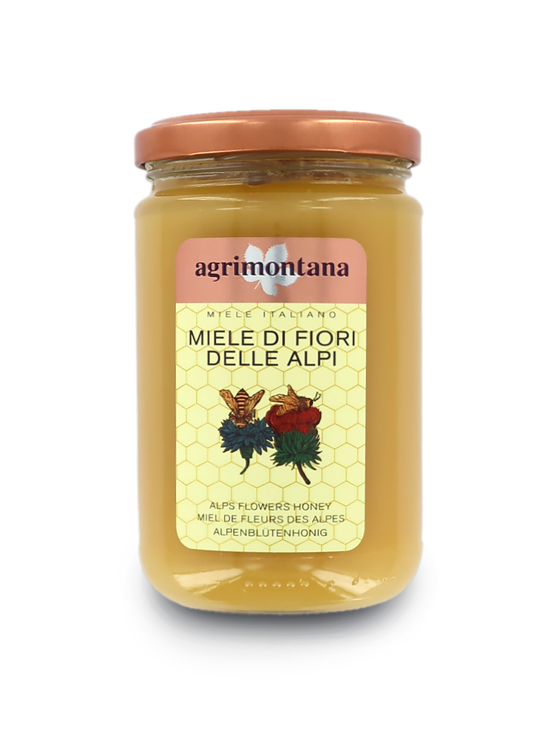 Miele di fiori di montagna in vasetto da 400g.