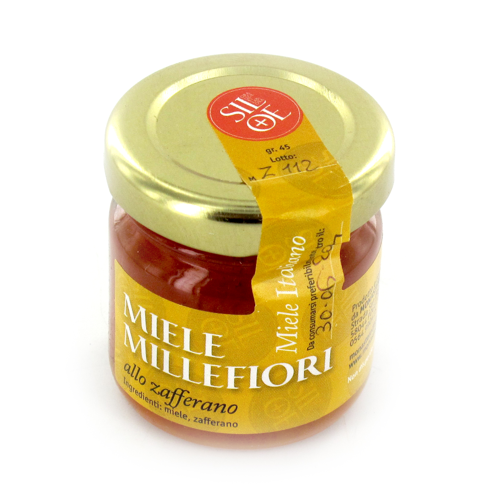 Miele Millefiori allo zafferano del Monastero di Siloe vasetto da gr. 45 Miele Millefiori ottenuto in spazi incontaminati sui colli che circondano il monastero, aromatizzato con pistilli di zafferano purissimo da agricoltura biologica. Ideale da utilizzare per abbinamenti agrodolci (aperitivi, crostini di pane, tartine, formaggi).