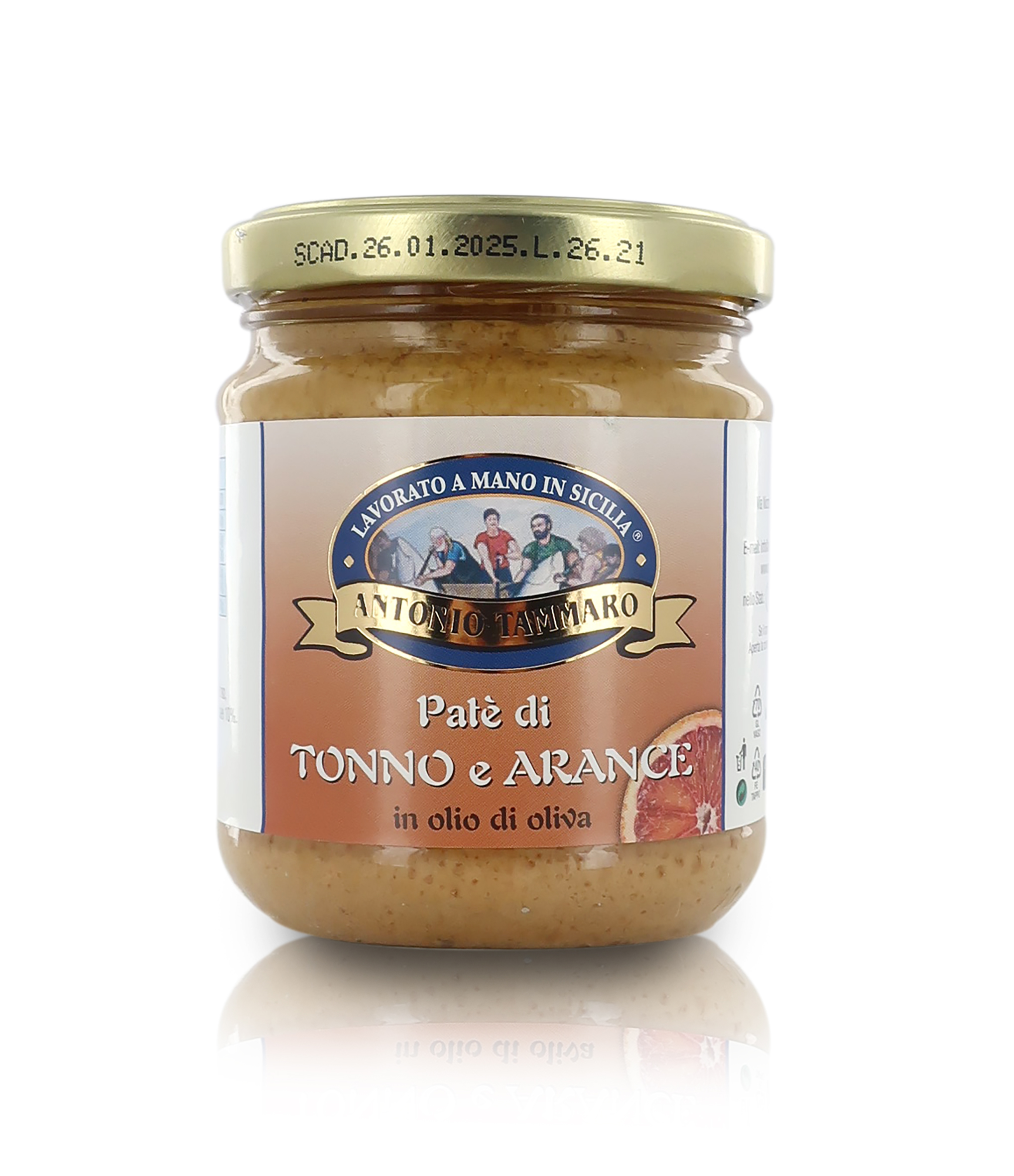 Paté di tonno e arance, ottimo da spalmare su bruschette, crostini e tartine. Pratico vasetto di vetro da 200g.