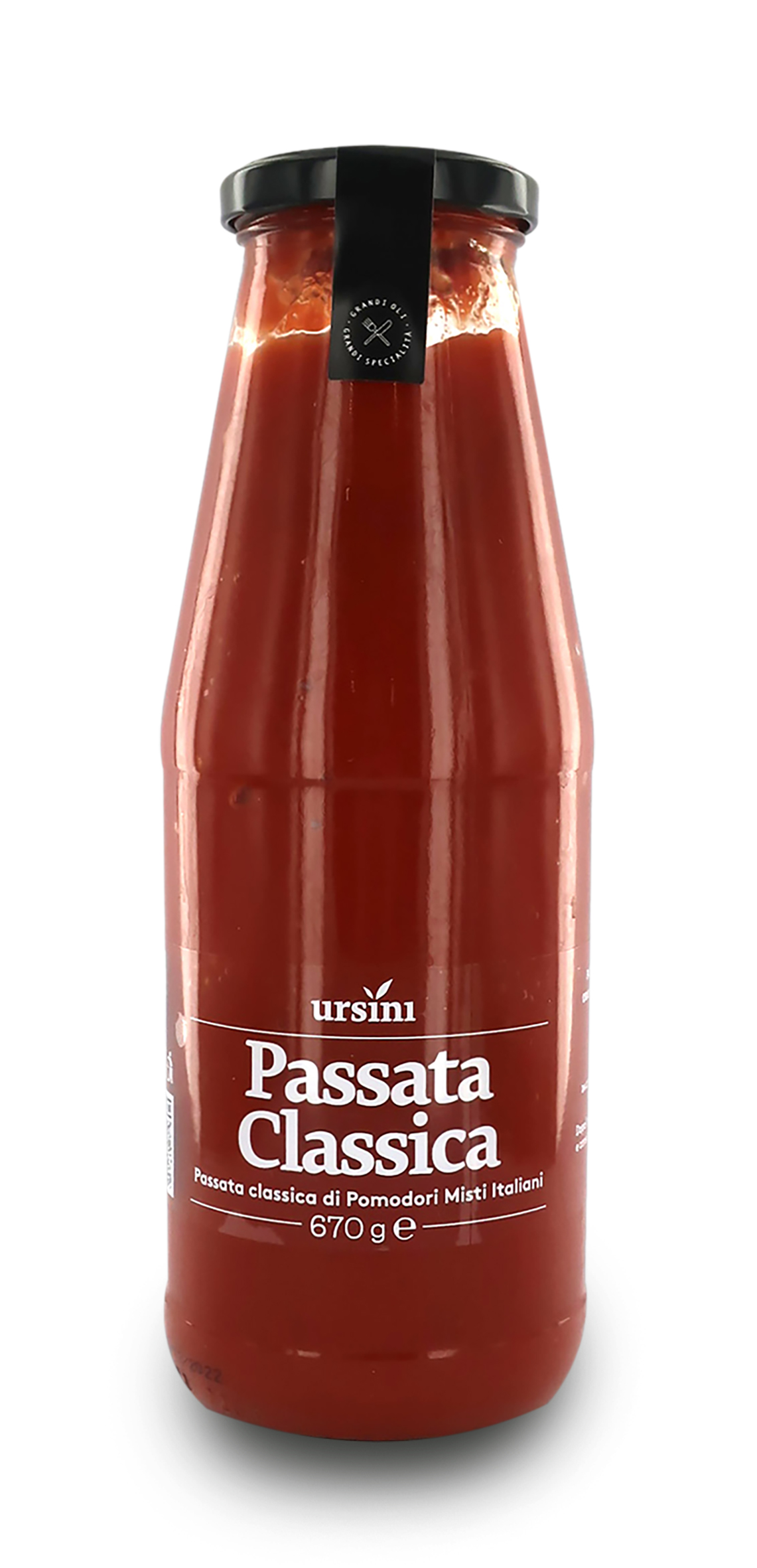 Passata classica di pomodori misti raccolti e lavorati artigianalmente in Italia. Perfetta base per la preparazione di sughi o per la farcitura della pizza.