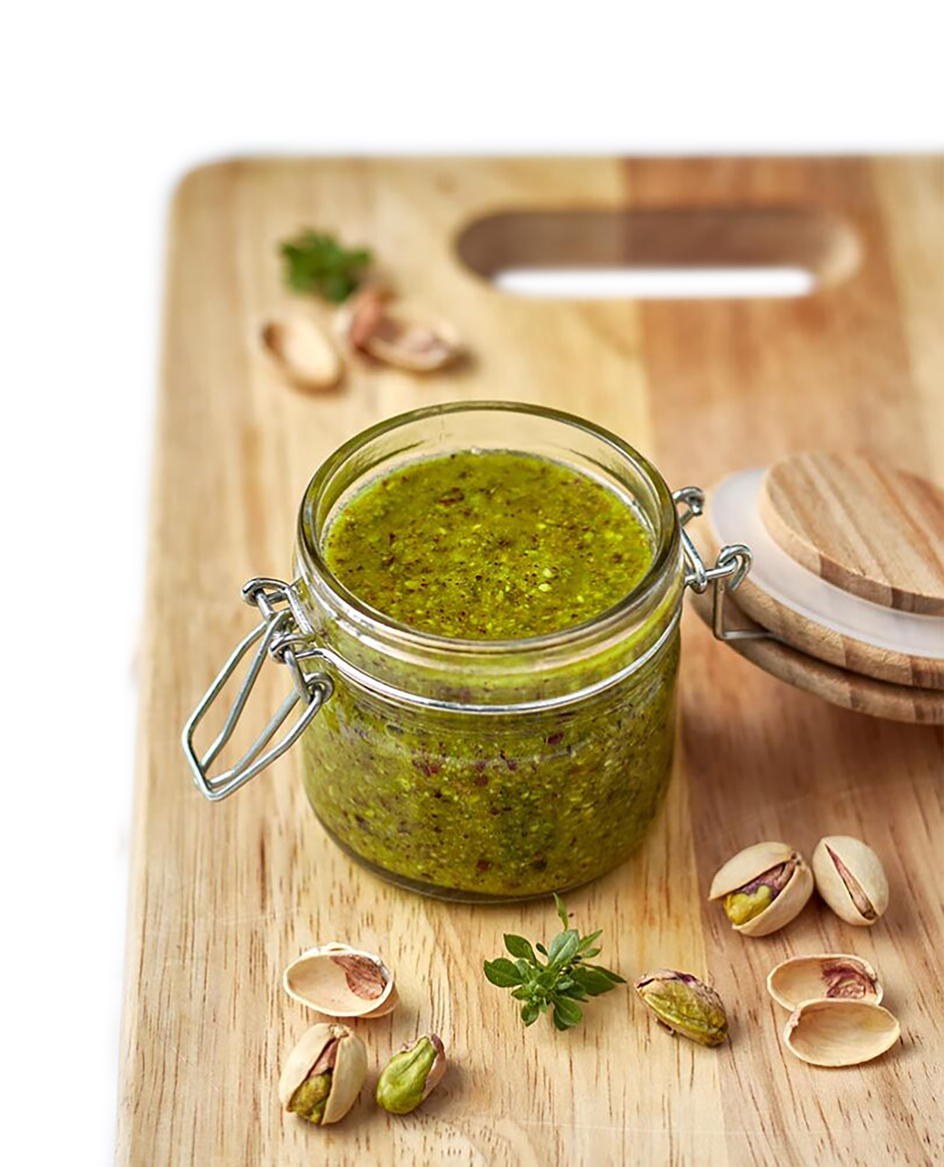 Ingredienti: PISTACCHIO (65%) (origine UE e non UE), olio di semi di girasole, sale, pepe nero. Possibile presenza di frammenti di guscio. Può contenere tracce di ARACHIDI. Senza glutine.
