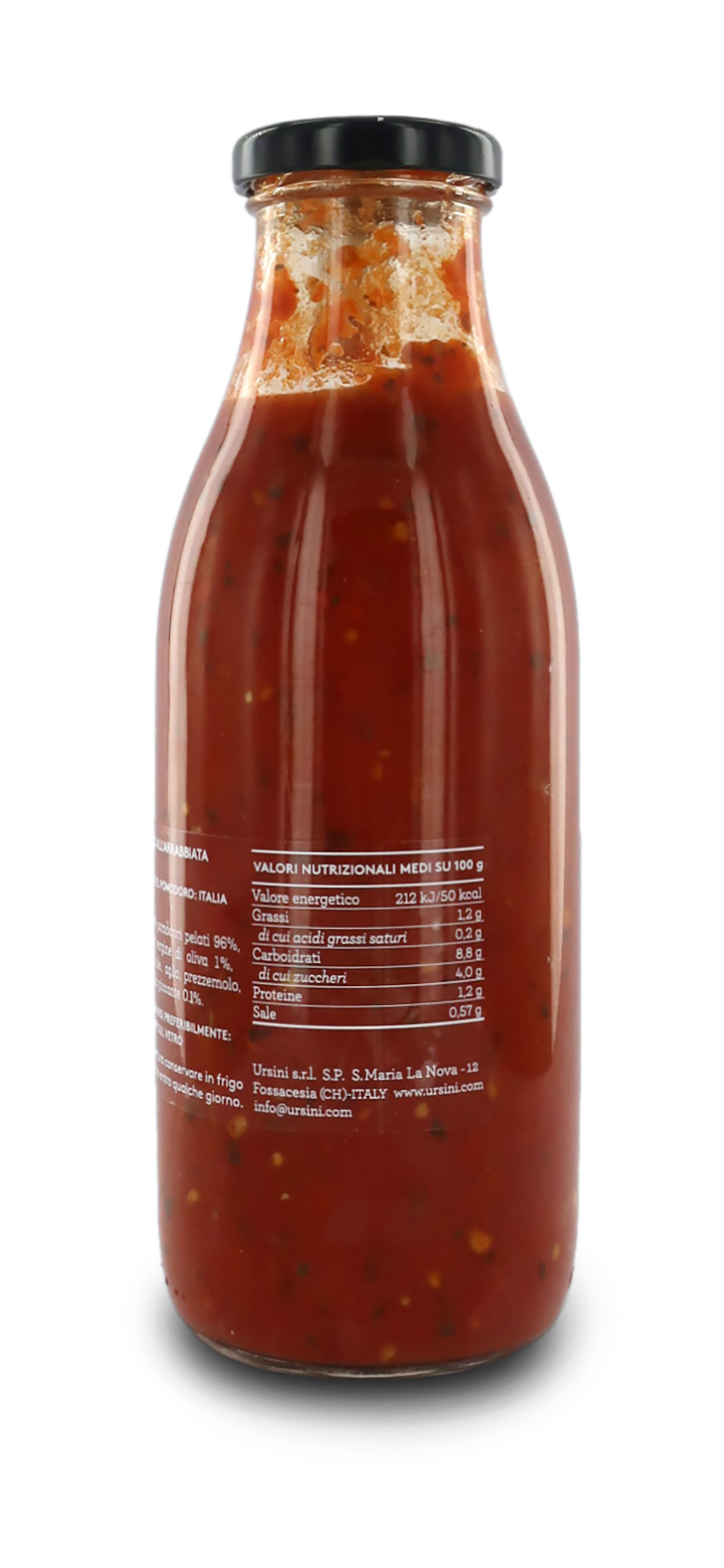 Ingredienti: pomodori pelati 96%, olio extravergine di oliva, basilico, sale, aglio, prezzemolo, peperoncino piccante 0,1%.