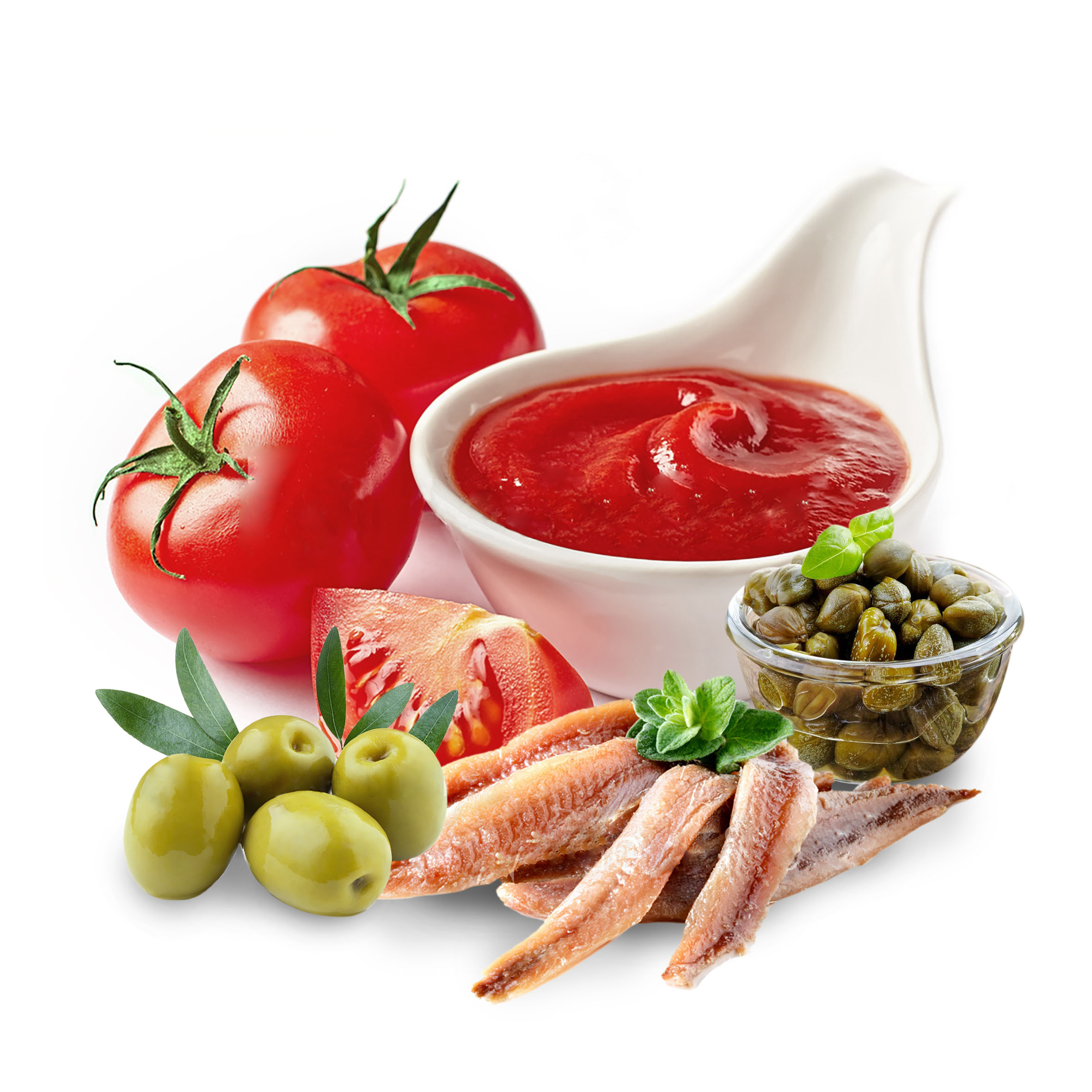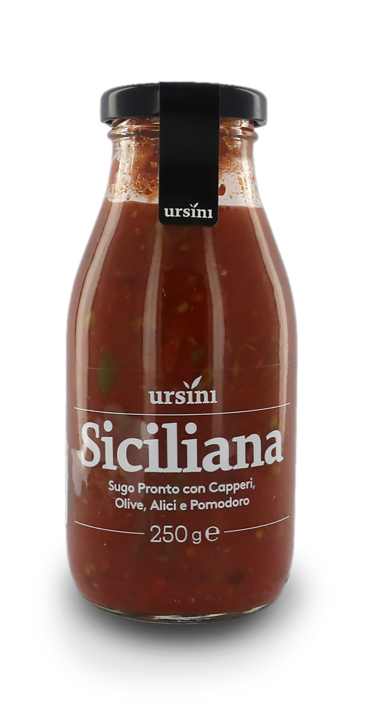 Sugo di pomodoro con acciughe e capperi, conosciuto anche come "alla siciliana". Pronto da scaldare (2/3 minuti) e da consumare. Contiene pomodoro pelato italiano e olio extravergine di oliva, ed è insaporito con alici, olive, capperi, aglio, sale e prezzemolo. Il gusto del pomodoro e la grande sapidità delle alici e dei capperi sono protagonisti in questo sugo, condimento classico tra i più amati della tradizione culinaria italiana.