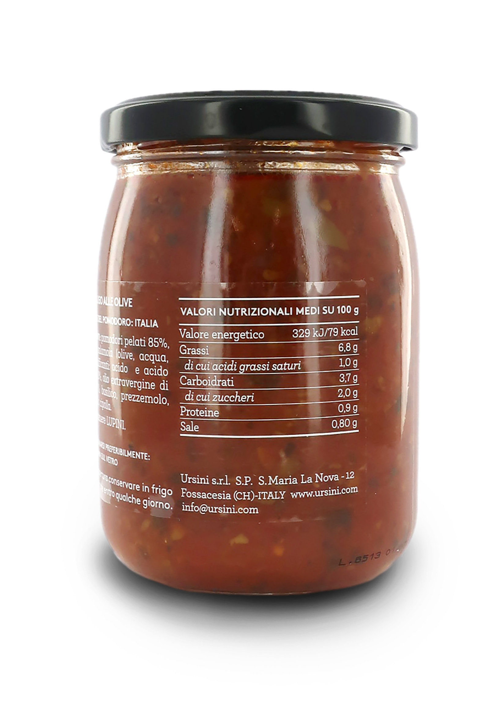 Ingredienti: pomodori pelati 96%, olio extravergine di oliva, basilico, sale, aglio, prezzemolo, peperoncino piccante 0,1%.