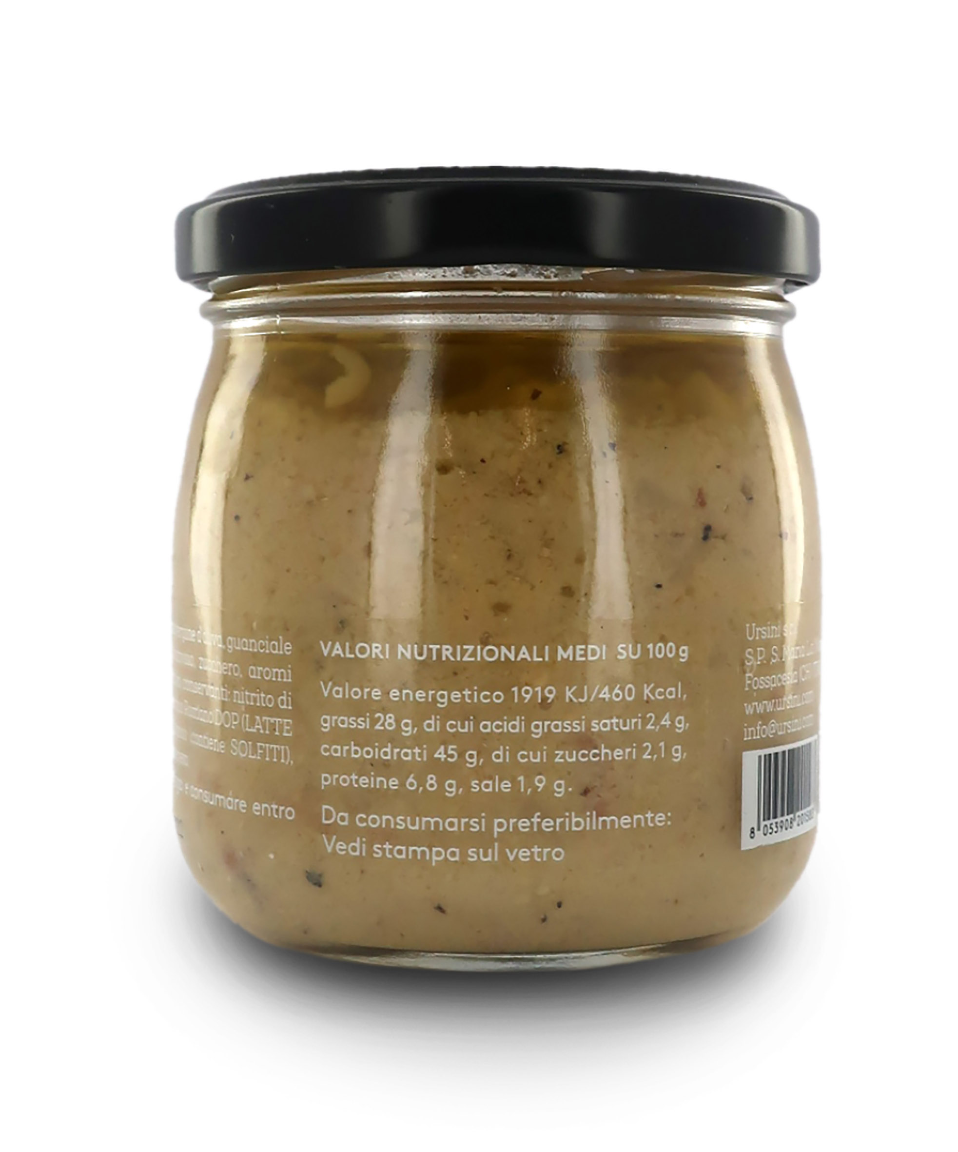 Ingredienti: cipolla 49%, olio extra vergine d’oliva, guanciale stagionato di suino (carne di suino, sale, destrosio, zucchero, aromi naturali, antiossidante: acido ascorbico, conservanti: nitrito di sodio e nitrato di potassio) 15%, formaggio Pecorino Romano DOP (LATTE di pecora, sale, caglio) 13%, vino bianco (contiene SOLFITI), acidificante: acido lattico, aglio, pepe nero. Prodotto in uno stabilimento che utilizza SEDANO, FRUTTA SECCA IN GUSCIO, PESCE, PANE, SENAPE, PRODOTTI A BASE DI LATTE E DERIVATI DELLE UOVA.