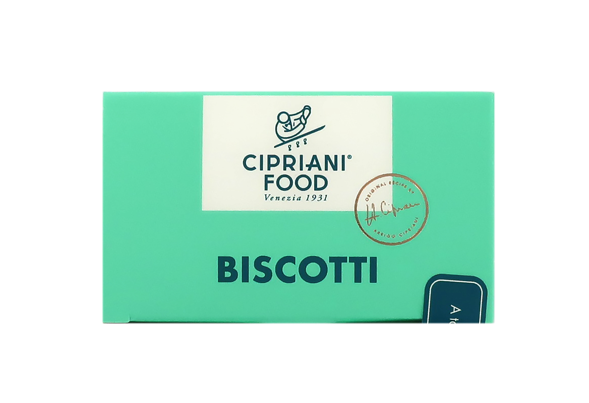 I biscotti frollini Cipriani sono contenuti in una bellissima scatolina di carta rettangolare, nei colori iconici del brand Cipriani.