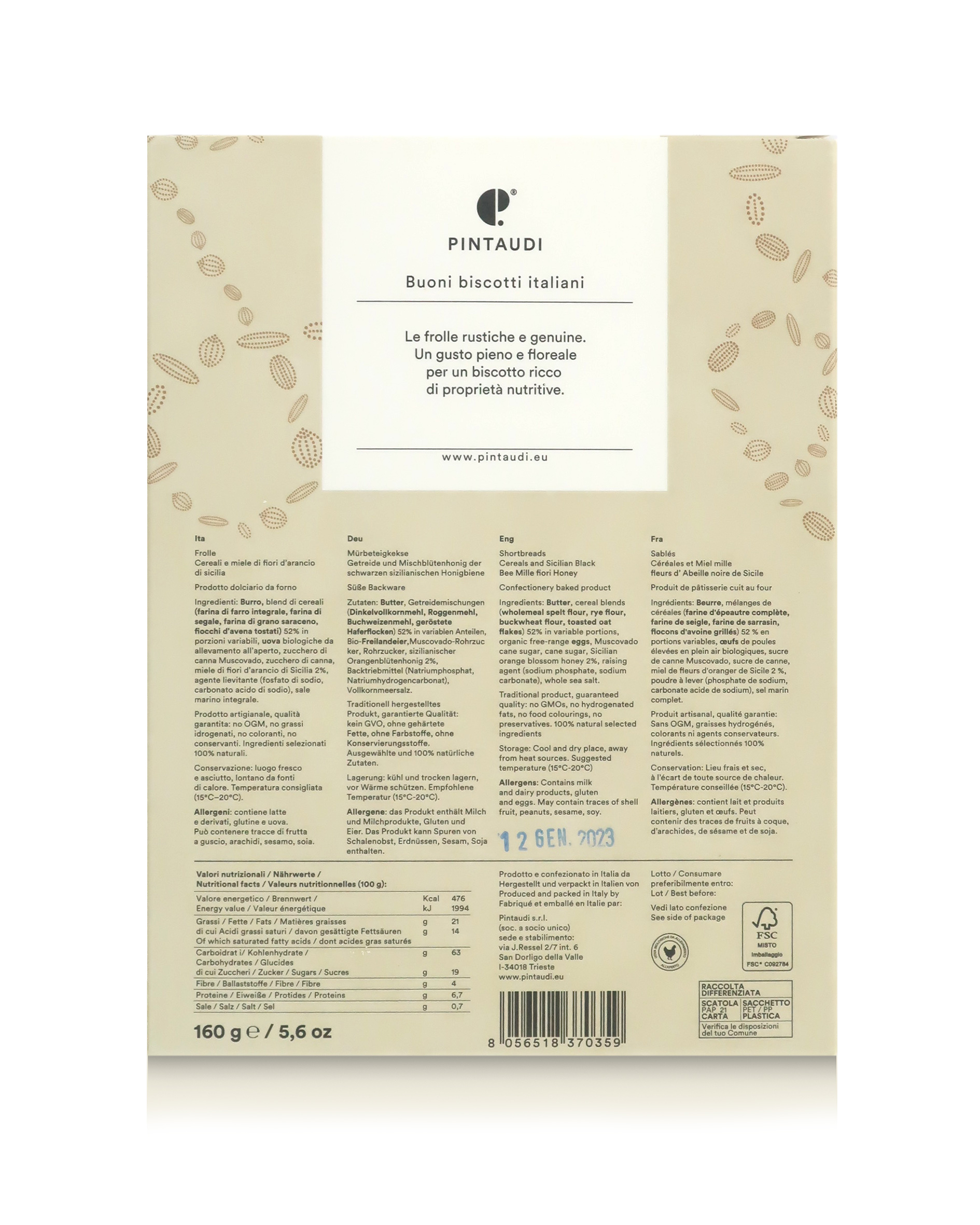 Pintaudi Frolle N. 5 - Biscotti Frollini ai Cereali e Miele di Fiori d'Arancio di Sicilia, 160 Grammi