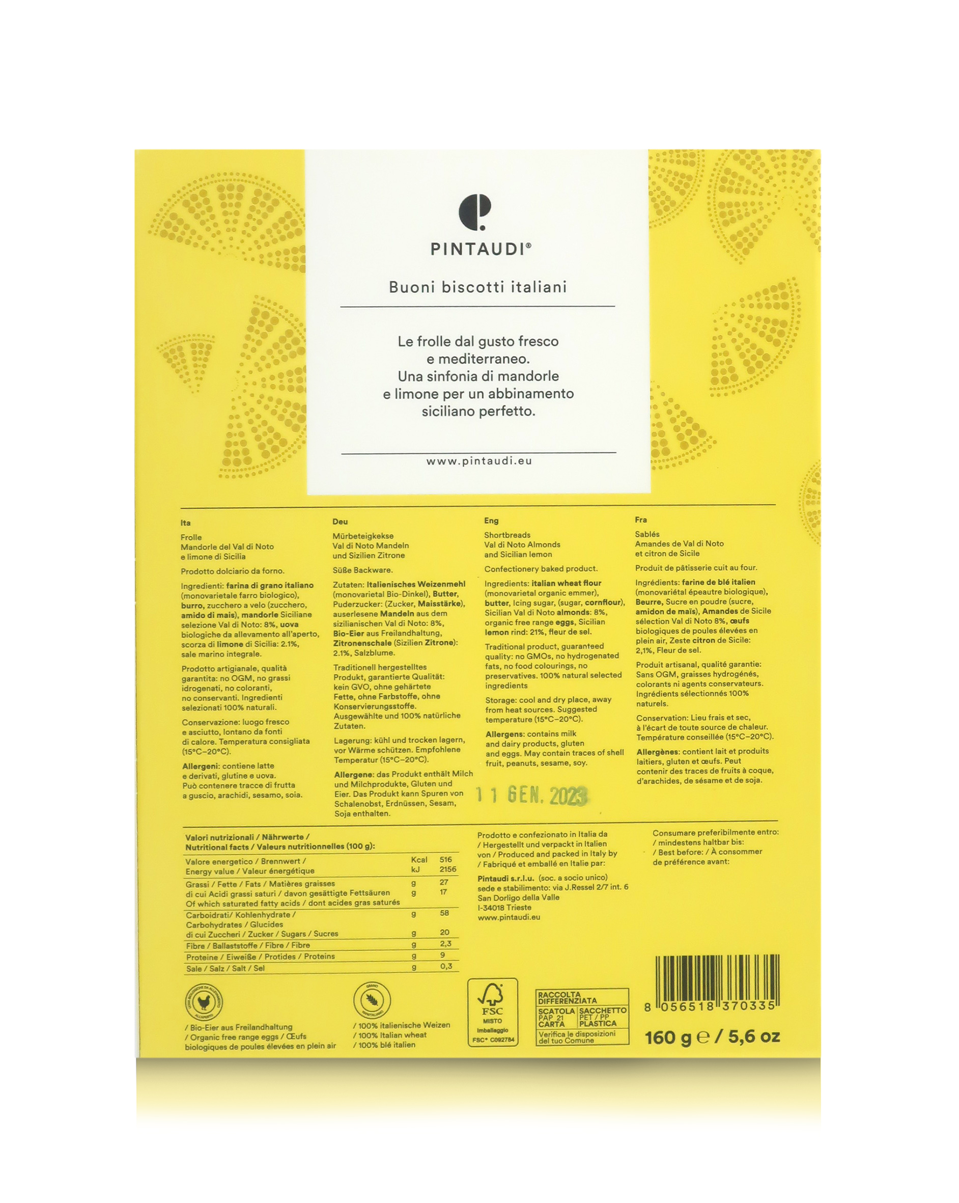 Pintaudi Frolle N. 3 - Biscotti Frollini alle Mandorle Val di Noto e Limone di Sicilia, 160 Grammi