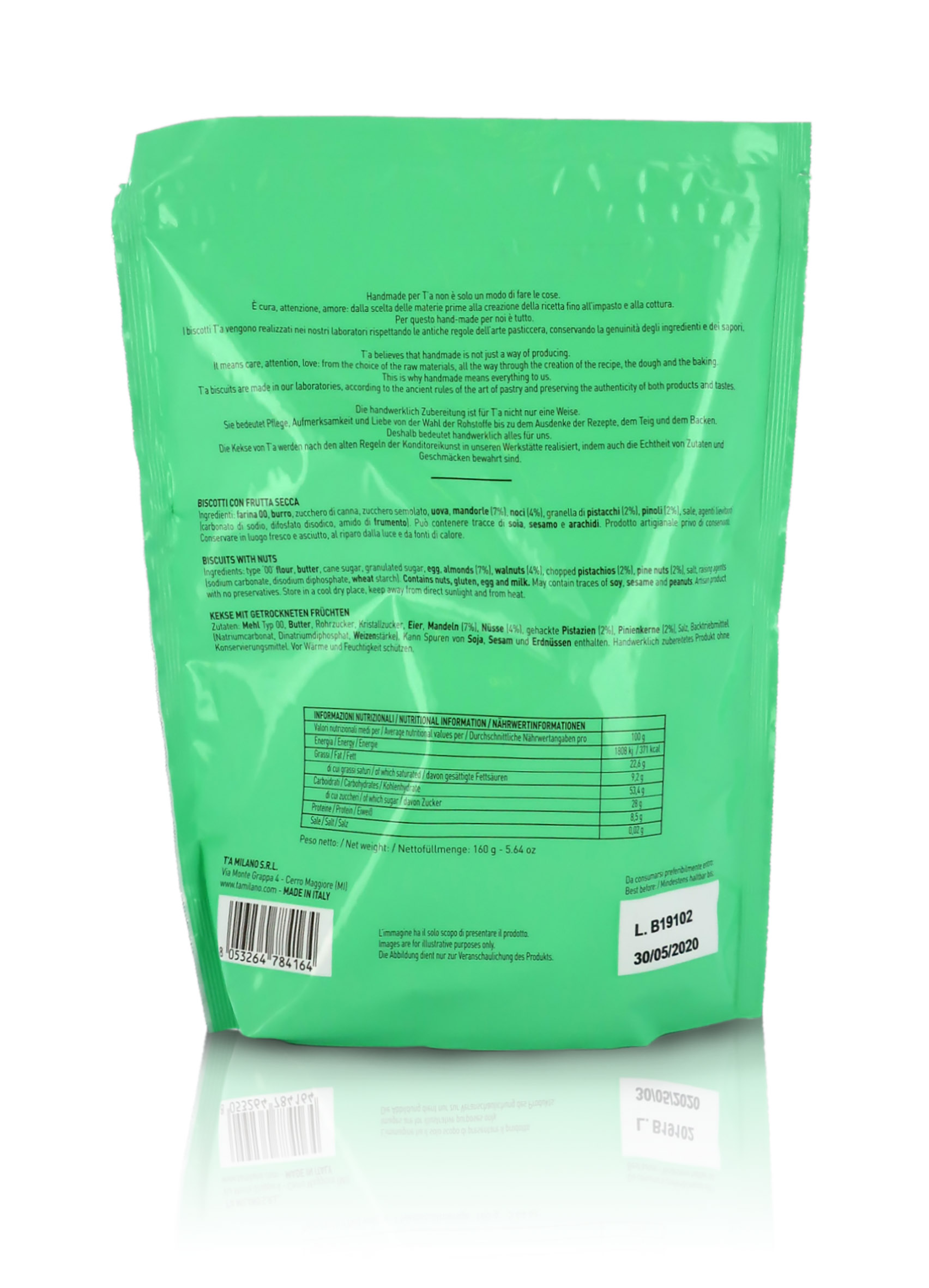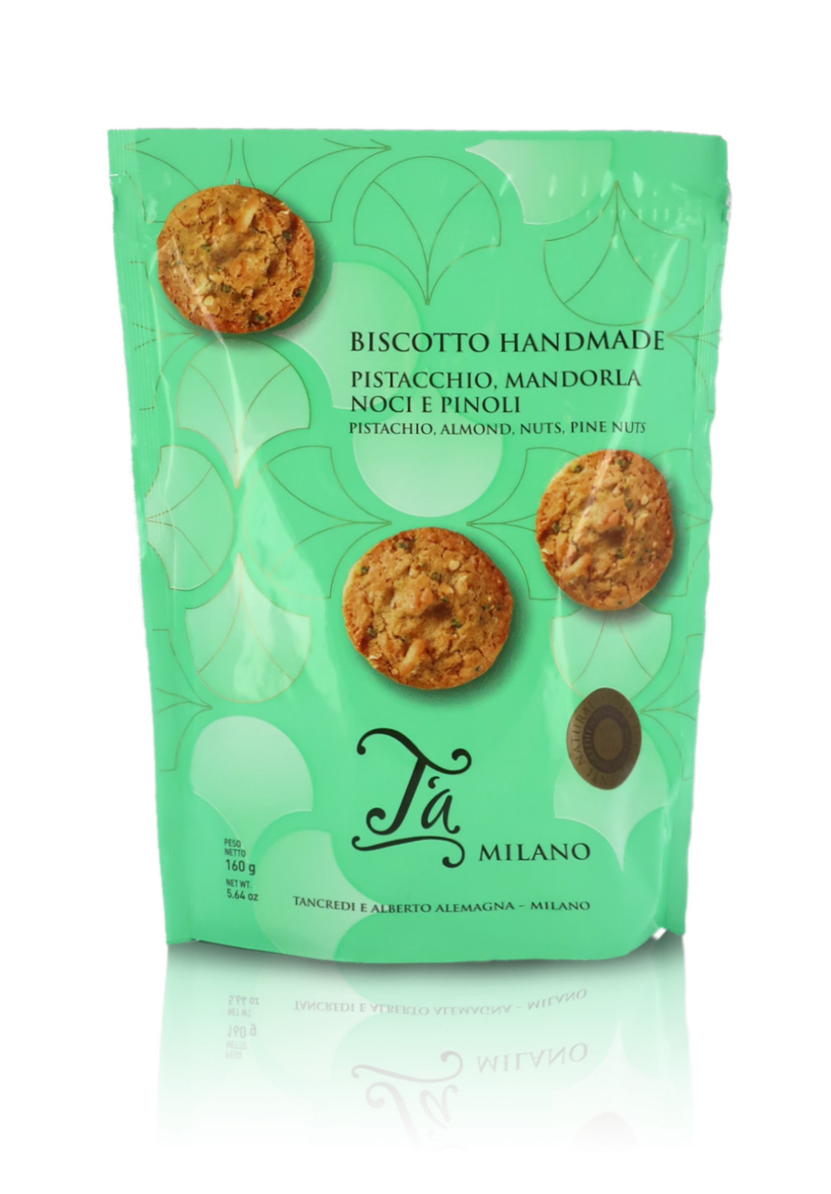 T'a Milano Sacchetto di fragranti biscotti alla frutta secca fatti a mano, con pistacchio, mandorla, noci e pinoli - 160g