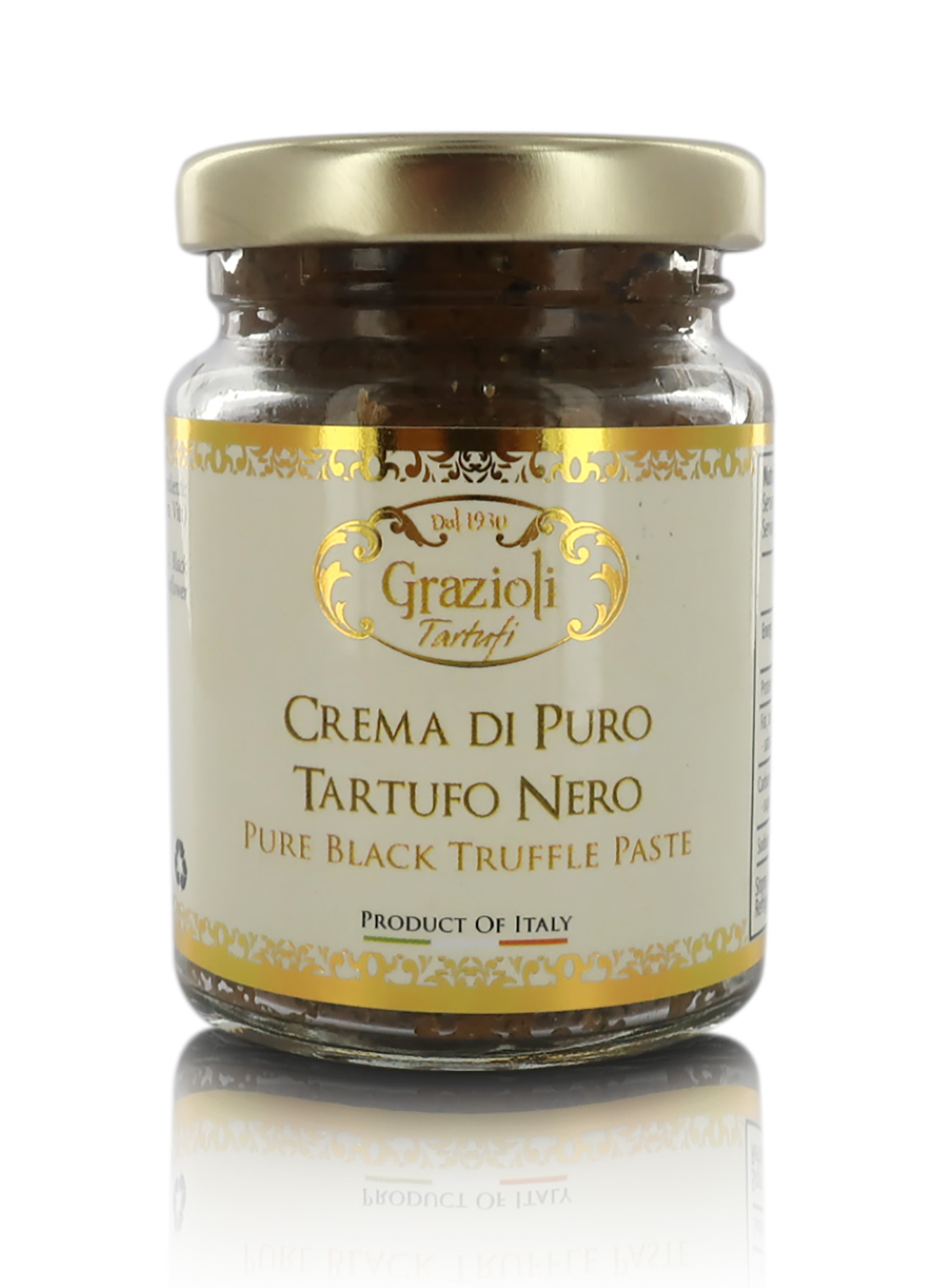 Grazioli Tartufi Crema di Puri Tartufi Neri Estivi, Crema Spalmabile Salata al Tartufo Nero, Ideale per Farcitura Pasta Ripiena e Tartine, con Tuber Aestivum Vitt, 90g