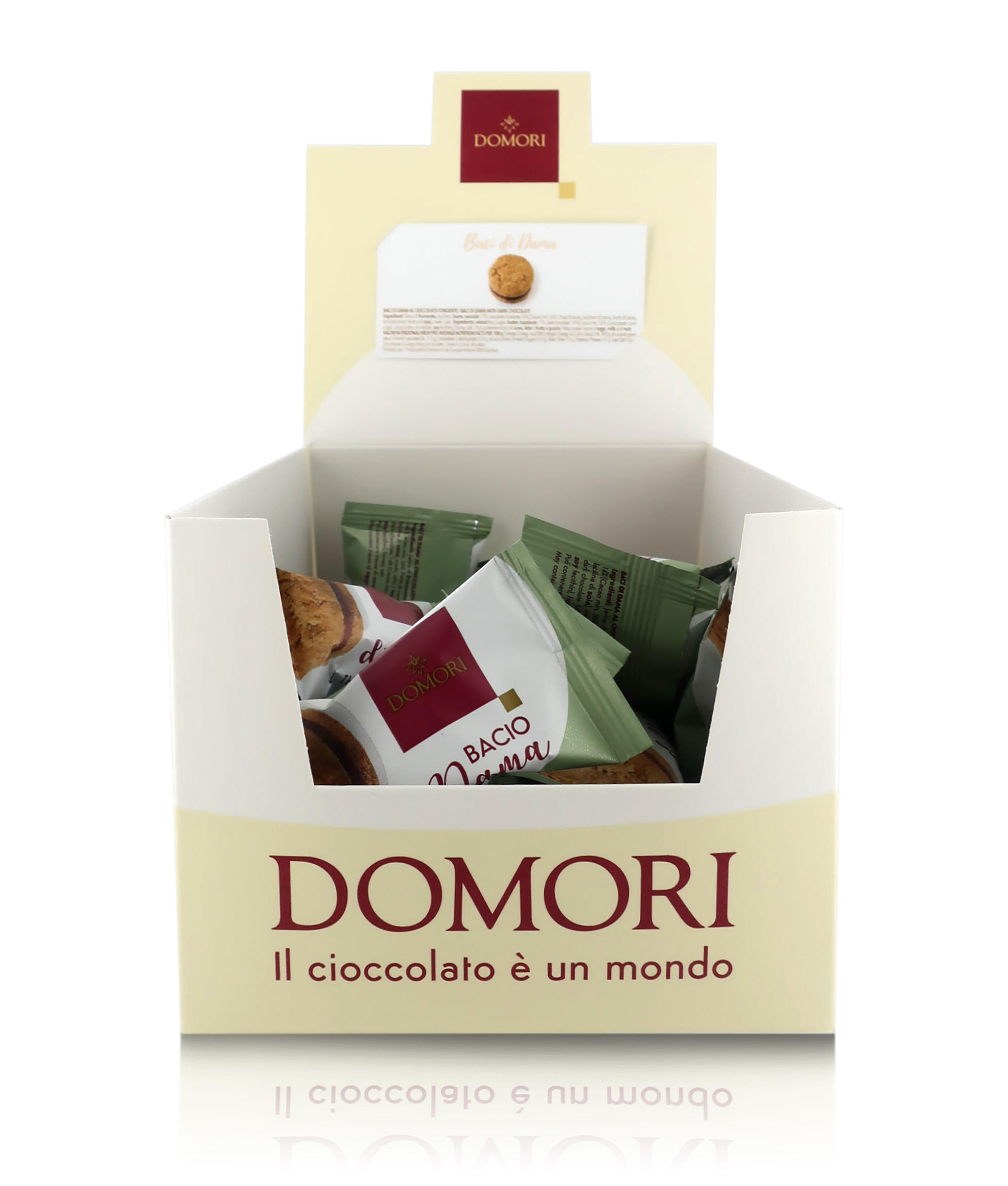 Domori propone il suo bacio di dama, un classico della raffinata piccola pasticceria italiana.