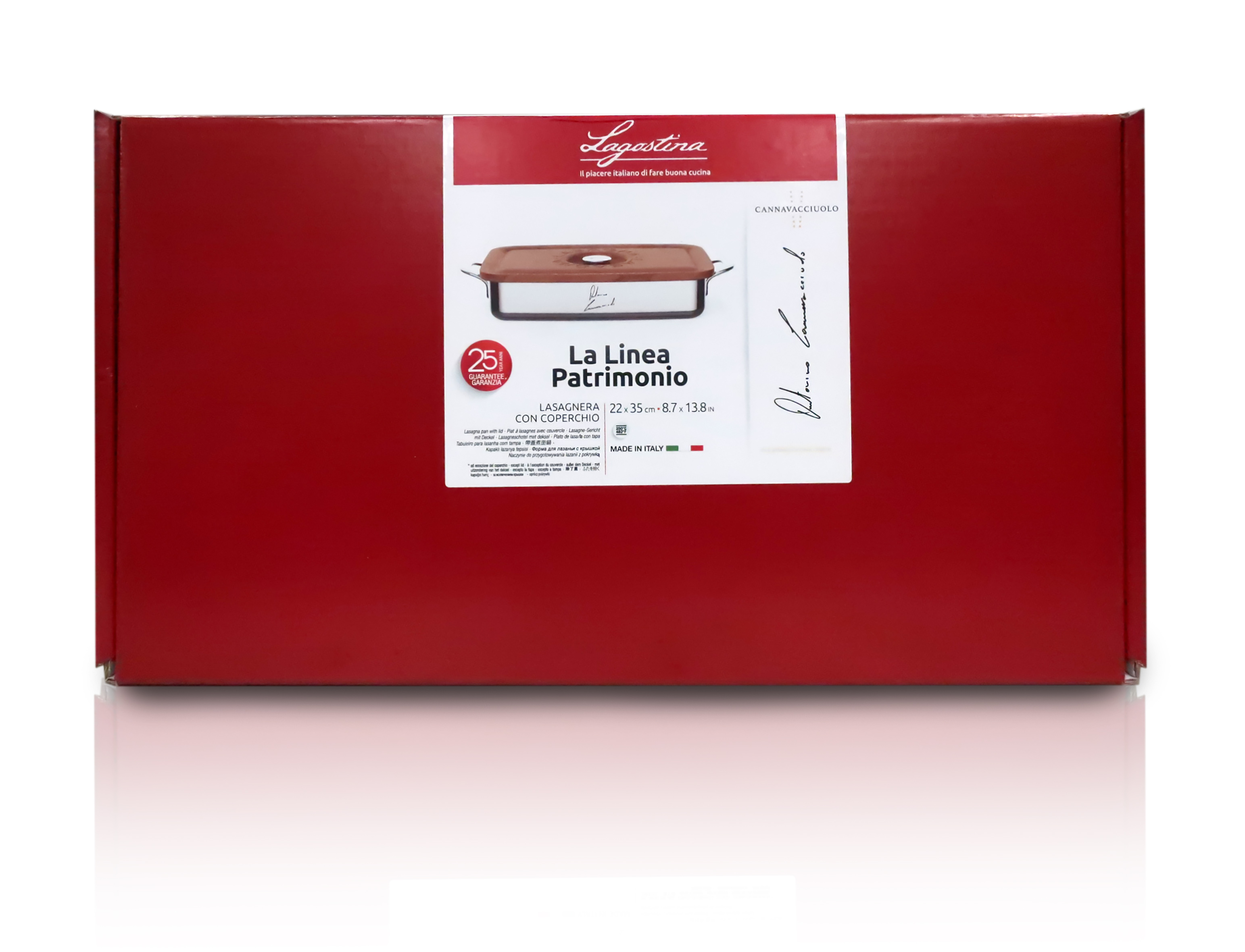 Questa lasagnera fa parte della linea di prodotti ufficiali "Antonino Cannavacciuolo", che reca la sua firma. La linea di prodotti per la cucina Cannavacciuolo è realizzata da Lagostina, sinonimo di qualità italiana.